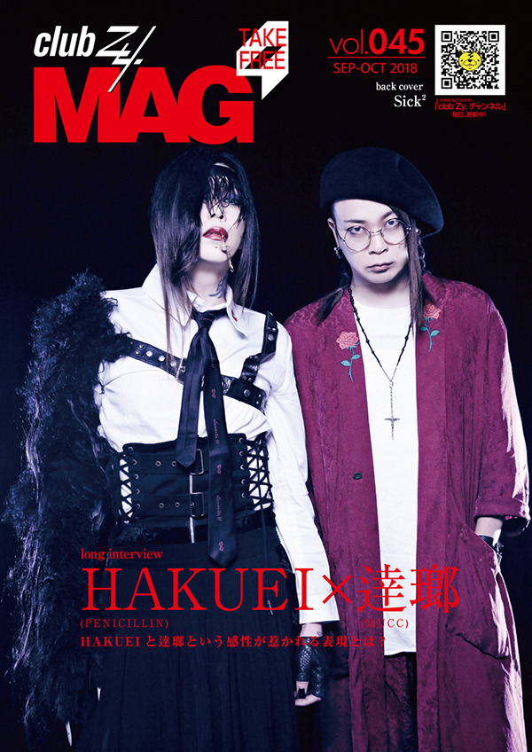 MEDIA 【逹瑯】『MAG vol.45』 表紙&対談掲載 30, Aug. 2018 HAKUEI(PENICILLIN)×逹瑯(MUCC)の対談掲載。 【配布開始日】 2018年8月31日(金) ※フリーペーパー 配布店舗はコチラ