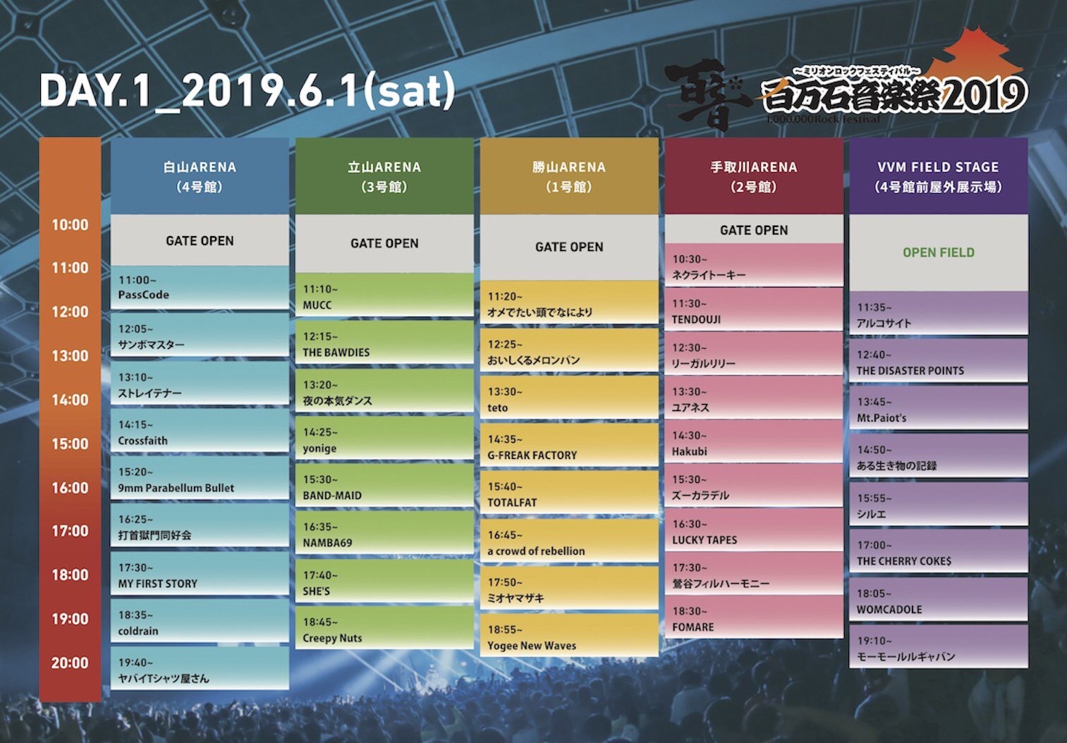 MUCC/a crowd of rebellion/鶯谷フィルハーモニー/打首獄門同好会/おいしくるメロンパン/オメでたい頭でなにより/9mm Parabellum Bullet/Creepy Nuts/Crossfaith/coldrain/THE BAWDIES/サンボマスター/SHE'S/G-FREAK FACTORY/ズーカラデル/ストレイテナー/teto/TENDOUJI/TOTALFAT/NAMBA69/ネクライトーキー/Hakubi/PassCode/BAND-MAID/FOMARE/MY FIRST STORY/ミオヤマザキ/ヤバイ T シャツ屋さん/ユアネス/Yogee New Waves/yonige/夜の本気ダンス/LUCKY TAPES/リーガルリリー