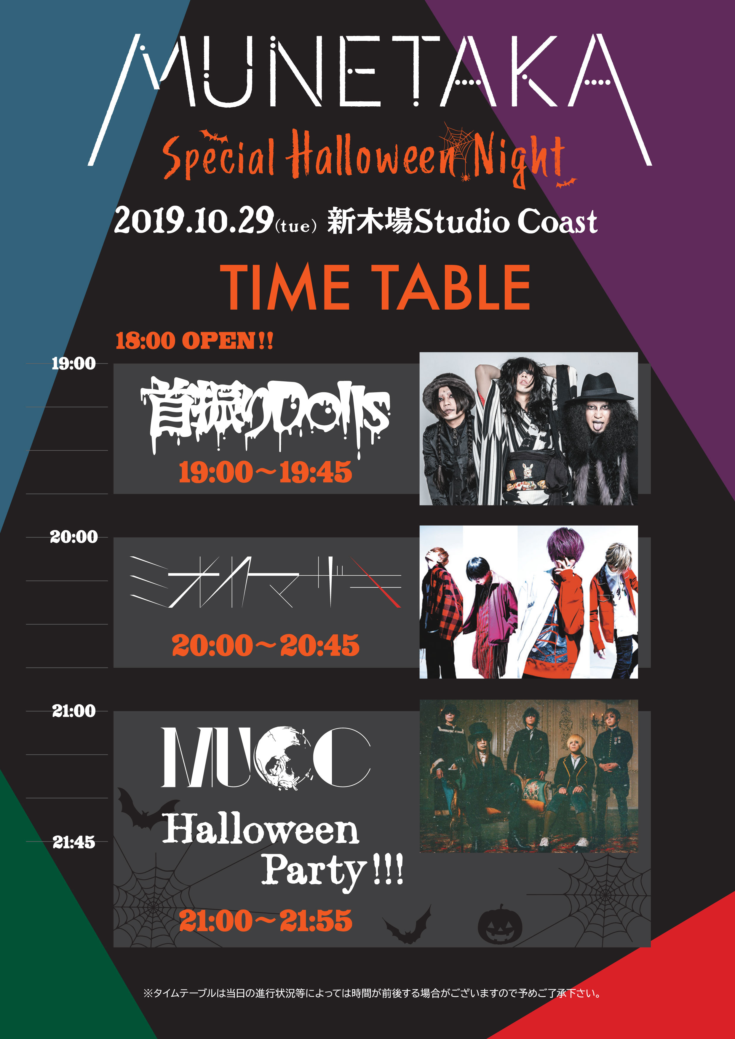 MUCC出演『MUNETAKA Special Halloween Night』タイムテーブル発表
