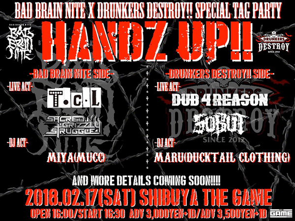 LIVE 【ミヤ】『BAD BRAIN NITE×DRUNKERS DESTROY!! SPECIAL TAG PARTY "HANDZ UP!!"』MIYAとして出演決定