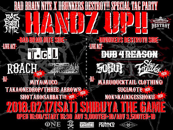 【ミヤ】MIYA出演『BAD BRAIN NITE×DRUNKERS DESTROY!! SPECIAL TAG PARTY "HANDZ UP!!"』追加アーティスト発表