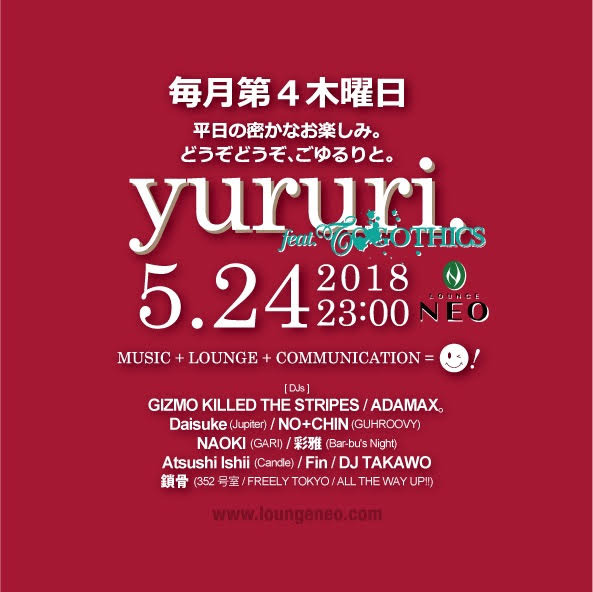 GIZMO KILLED THE STRIPES/ADAMAX。/Daisuke(Jupiter)/NO+CHIN(GUHROOVY)/彩雅(Bar-bu's Night)/NAOKI(GARI)/Atsushi Ishii/Fin/DJ TAKAWO/DJ RYZ/鎖骨(352号室/FREELY TOKYO/ALL THE WAY UP!!)
