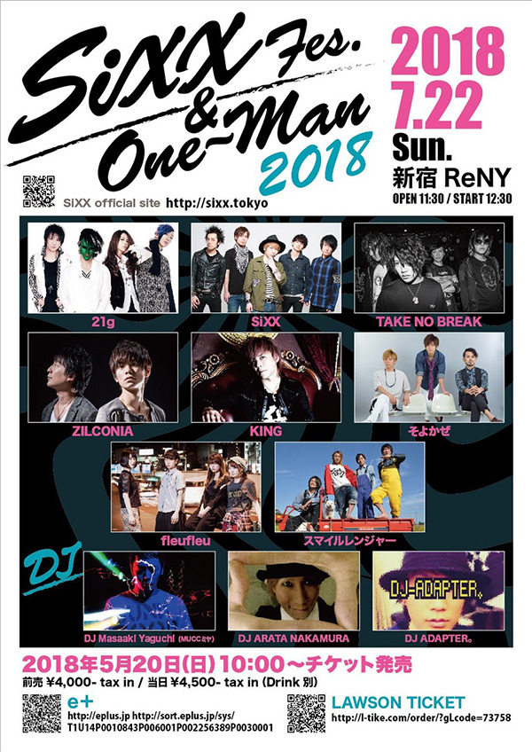 【ミヤ】DJ Masaaki Yaguchi出演『SiXX Fes. & ONE-MAN 2018』チケット一般発売情報